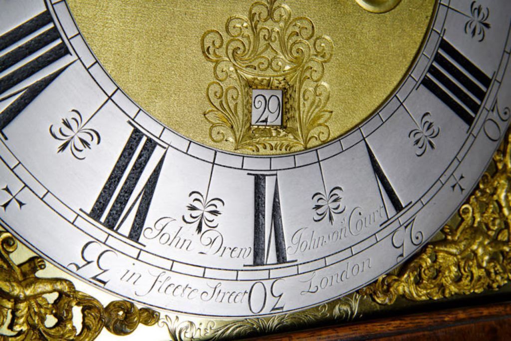 John Drew (1676 - 1713) machte die Ausbildung bei Joseph Knibb. Er war Mitglied der Clockmakers Company ab 1684. Gemäss G.H. Baillie ist nur noch eine weitere Bodenstanduhr von ihm bekannt